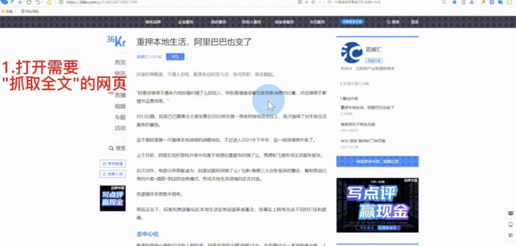 「抓取全文」功能可以抓取网页中的长文内容,一键生成可编辑的文档,适合解决网页中需要复制的文字过长的情况。