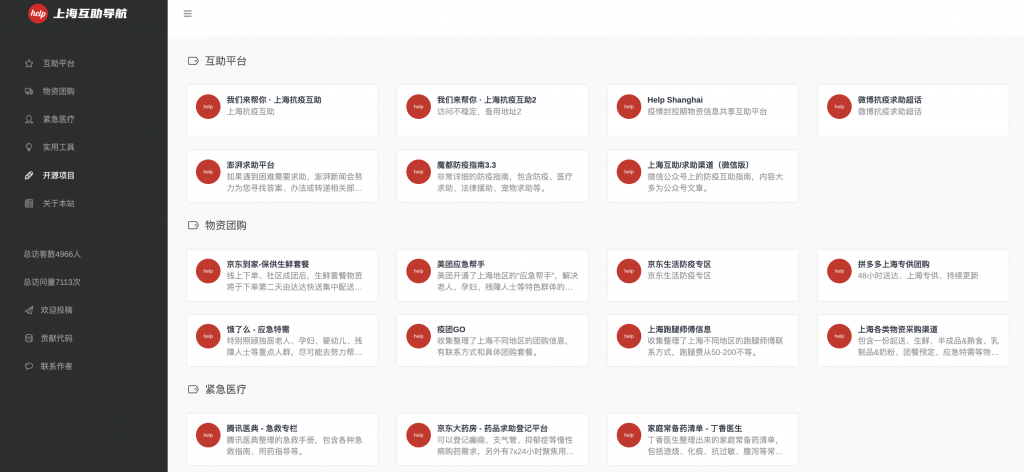 最近上海疫情依旧很严峻,前几天志愿者做了上海抗疫互助平台,在特殊时期帮助了许多人。我相信互联网工具能够在疫情阶段帮助人们,也想为上海做点事。